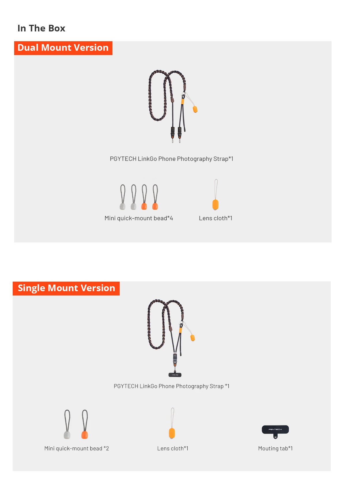 Bought this for my wife and she loves it. The PGYTECH beans are smaller so can't be used with camera straps - but their smaller size is better proportioned for phones. It's well made and gives me peace of mind that she's not going to drop/lose her phone on vacation.