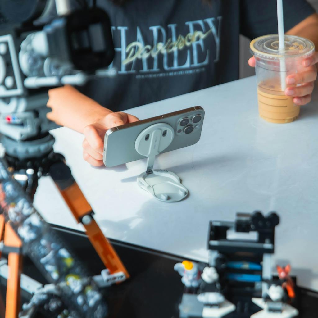 The grip's ability to float at any angle is nothing short of impressive. It doesn't matter if I'm video calling, watching my favorite series, or capturing stunning photos, this grip provides the flexibility I need. The four distinct modes—Desktop Stand, Overhead, Briefcase, and Selfie Stick—make it incredibly versatile. I particularly love using the Desktop Stand Mode for vlogging and video calls; it holds my phone securely while I focus on the conversation without worrying about my device slipping.
