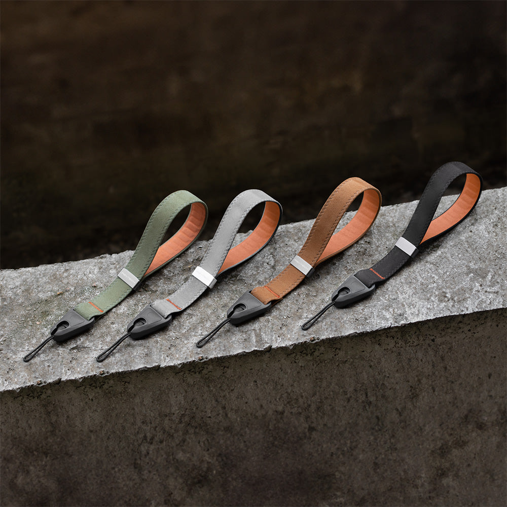 This wrist strap is similar to another one I have, but this one has a softer material and a unique quick connect system. The quick connectors are referred to as "quick beads", which is a functional design, but requires a hard press on the connector to disconnect. Although secure, the quick beads don't always attach properly, unless adjusted. The quick beads are round in nature and can rotate on the connector end, which I think is pretty neat.There is a warning on the box that says the suede microfiber can stain light colored objects, which is something to be aware of. The strap itself is a bit on the stiff side, but the exterior suede material is pleasantly soft.Just like the other strap I have, this one is bulky where the quick connectors attach. When using my camera, I have to make sure the bulky connector is in between my thumb and index area, otherwise it can flop around and hit the camera.Overall, this is a durable feeling wrist strap with an interesting quick connector system, although it's not always easy to connect or disconnect. This strap is not the most original design since it borrows a lot of ideas from similar straps, but the suede material is very comfortable.