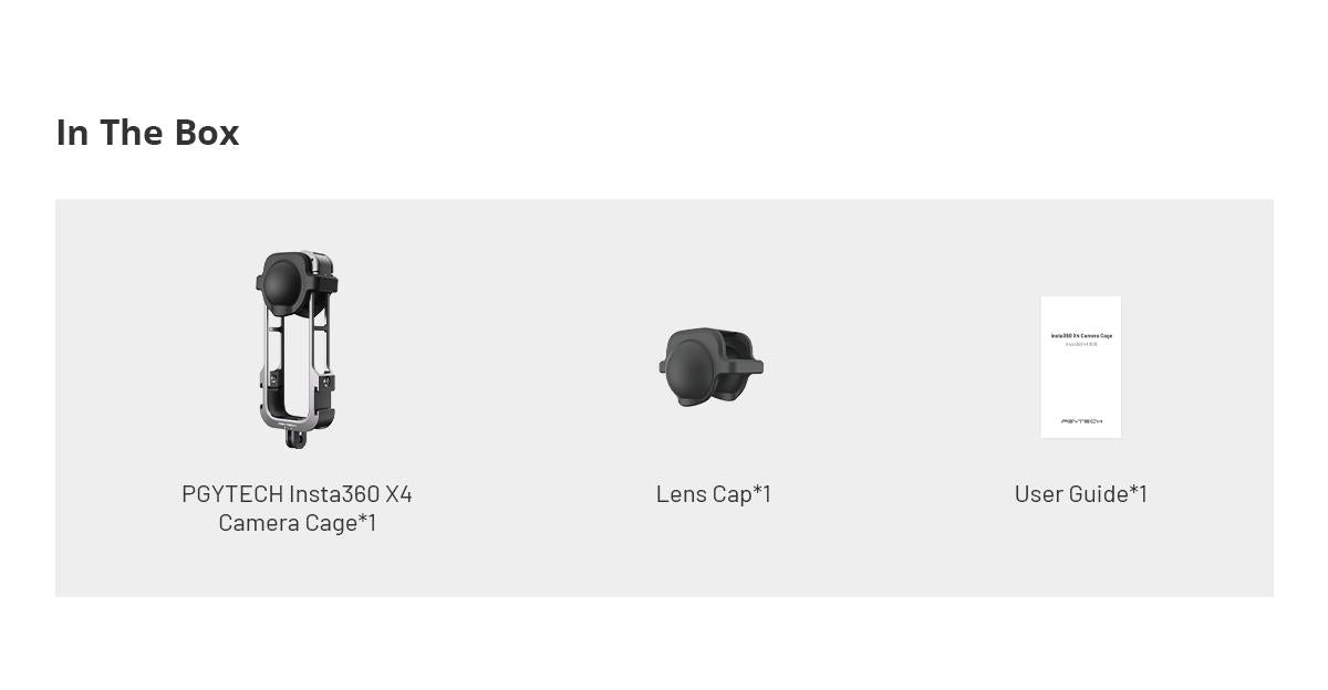 1. Tailor-made for Insta360 X42. Flip-open design for convenient and efficient assembly3. Multiple interface for connecting various photography equipment4. Switch freely between landscape and portrait modes5. Side hollowed-out design for normal operation of camera function buttons6. Compatible with both forward and reverse insertion of the action camera7. Silicone lens cap, compatible with A-grade and S-grade lens guards